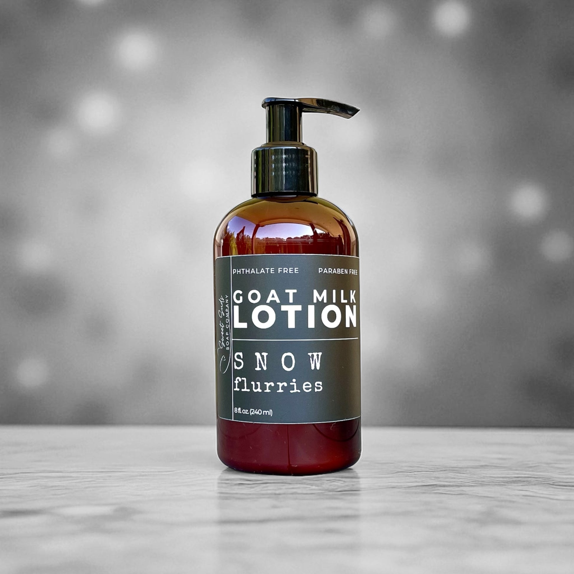Wrap your skin in the cozy magic of winter with our Snow Flurries Goat Milk Lotion. This luxurious blend is enriched with creamy goat milk, shea butter, and nourishing oils that deeply hydrate and leave skin silky smooth. The fragrance swirls together notes of sweet vanilla and a cool kiss of peppermint—more warm and comforting than minty—like catching snowflakes on your skin during the first snowfall of the season. Lightweight yet indulgent, it melts in quickly without greasiness, keeping your skin soft and moisturized all winter long.